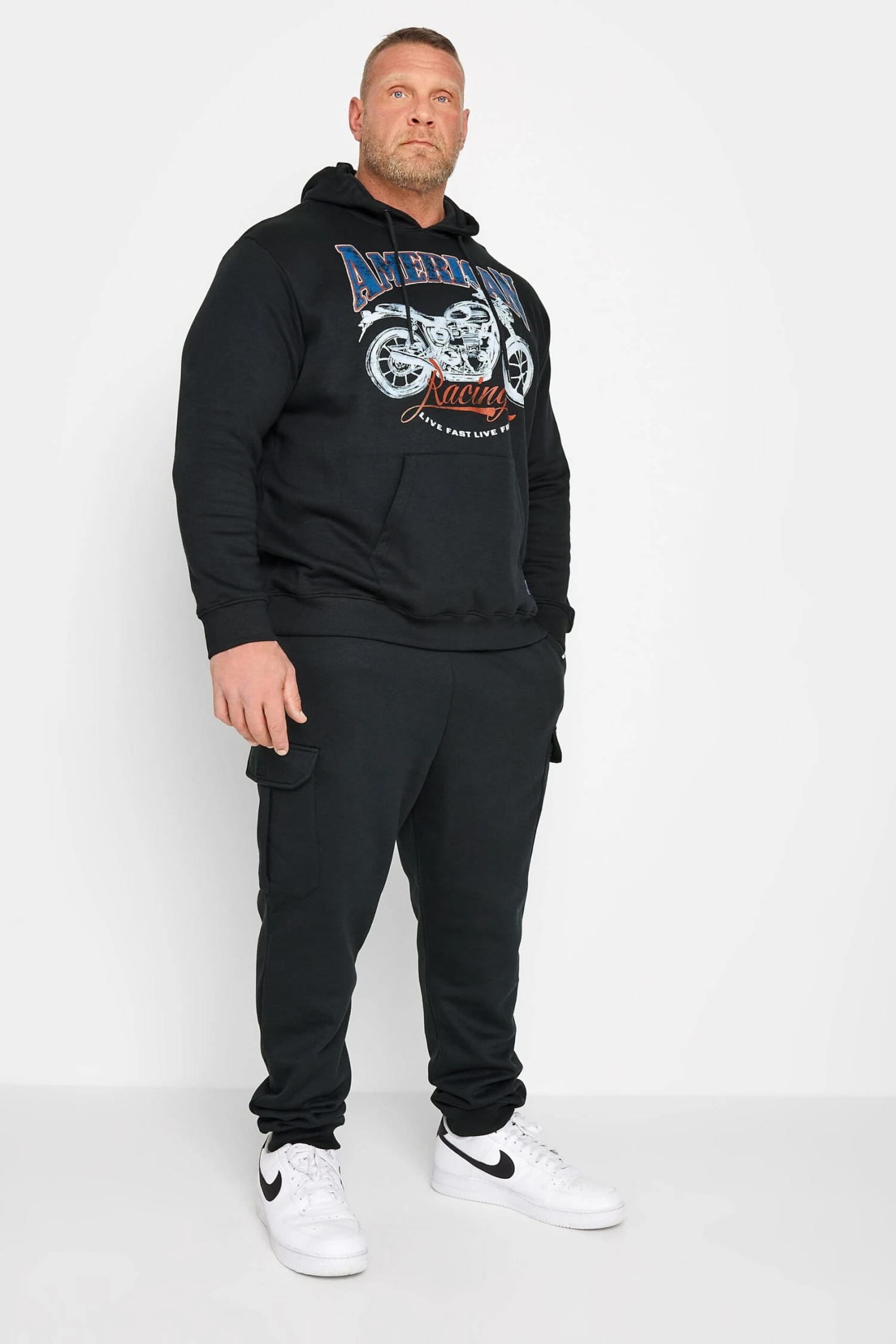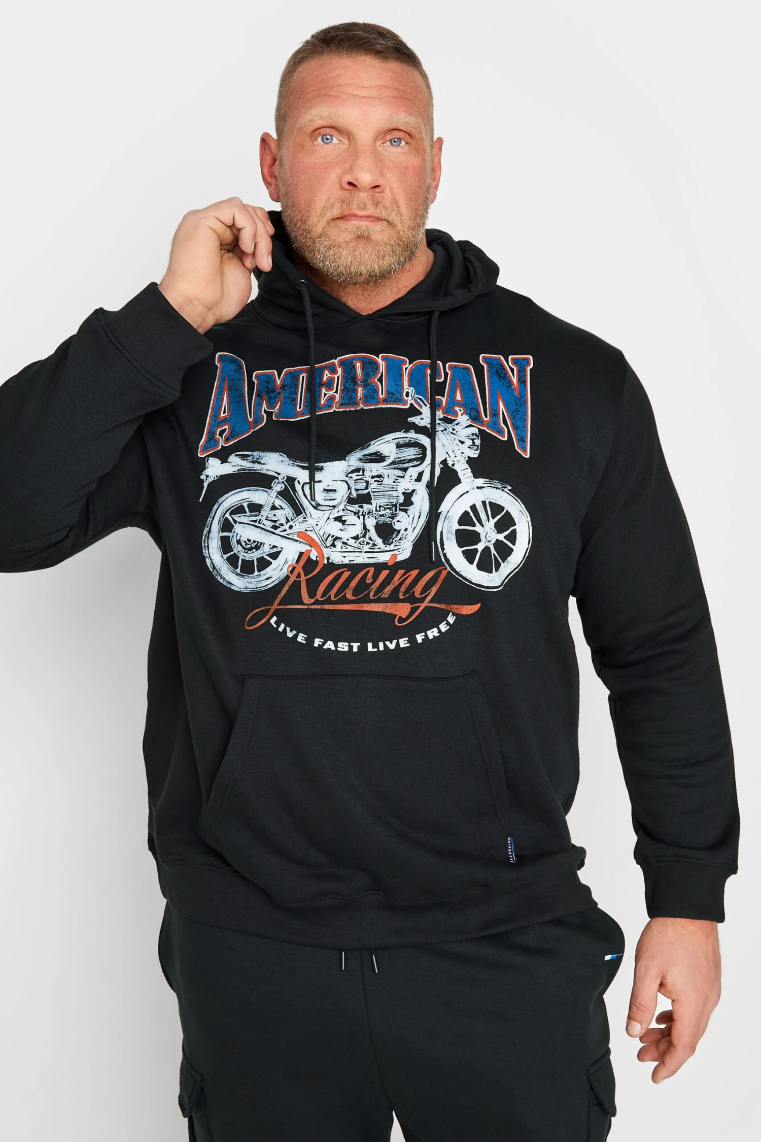 This BadRhino big & tall hoodie is ideal for every day. Comfortable in cotton, it features long sleeves and a hood with adjustable drawstrings, complete with an ‘American racing’ motorbike print. Wear with the matching joggers for comfy casual.