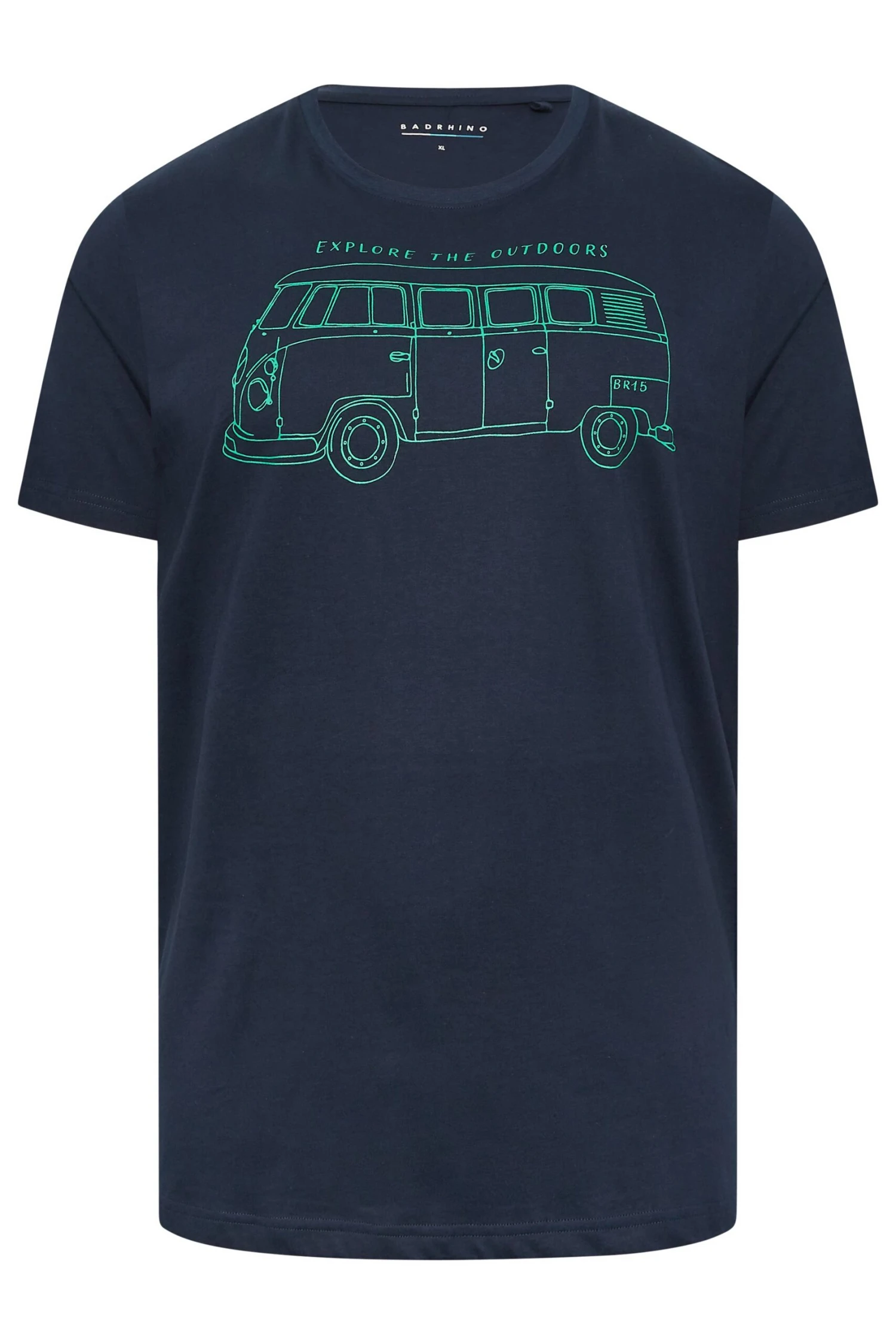 A cool casual staple. This BadRhino t-shirt features short sleeves and a crew neck and is finished with an ‘explore the outdoors’ graphic print to the chest and back. Shorts and trainers finish off this easy everyday outfit.