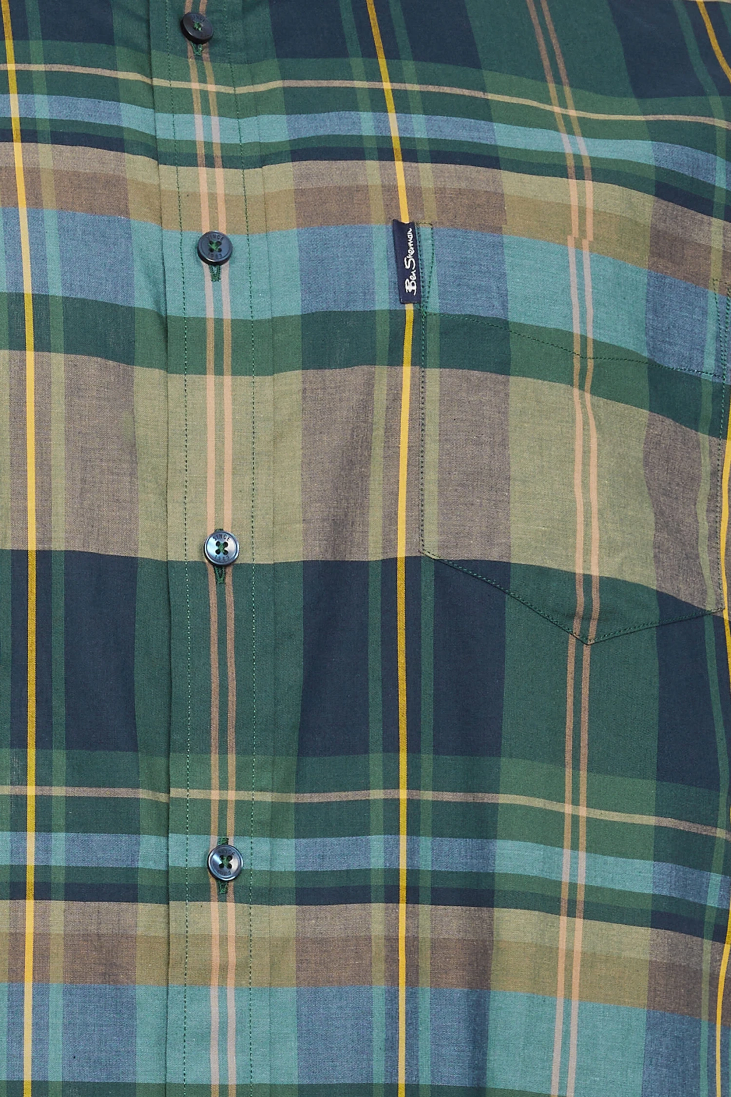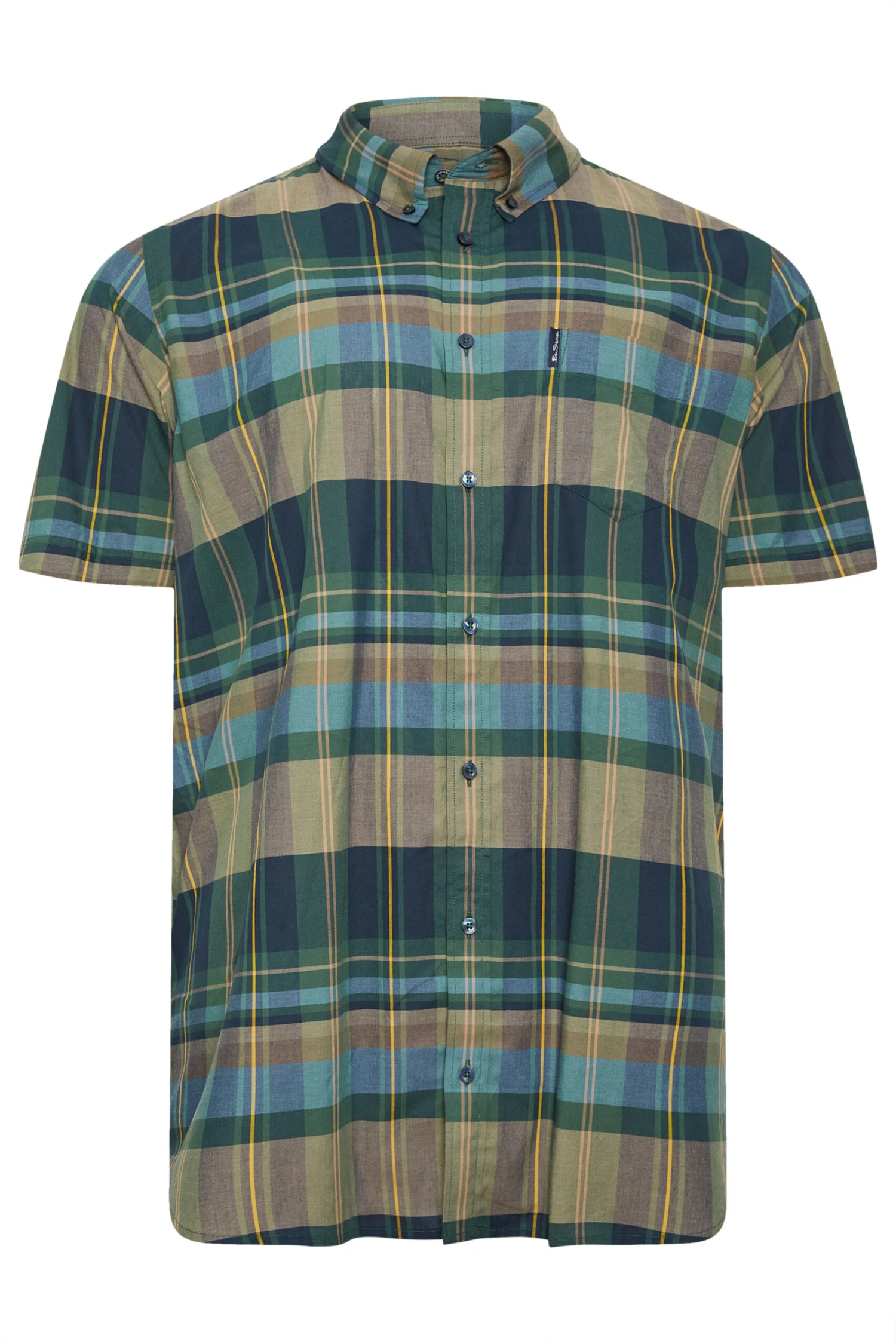 Enhance your smart casual wardrobe with this Ben Sherman short sleeve shirt. Constructed from a woven pure cotton fabric, it features a button down collar, button fastenings, logo branding and short sleeves. Team with chinos or jeans and trainers for a weekend look.