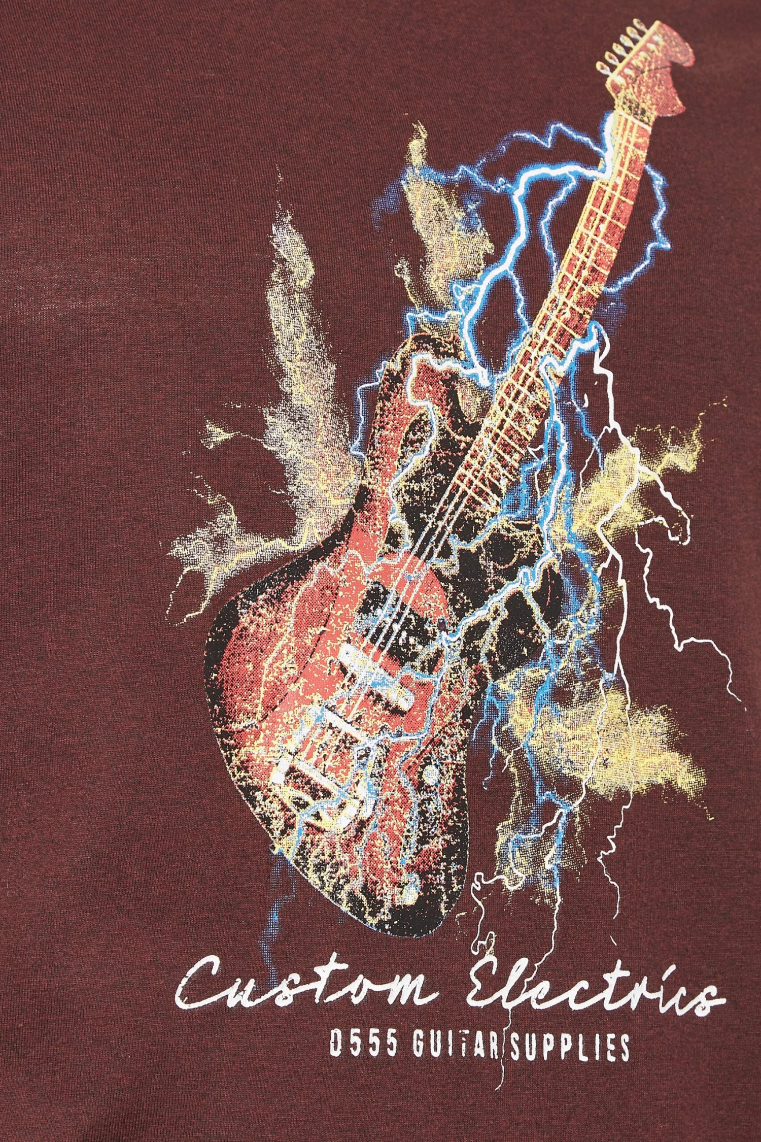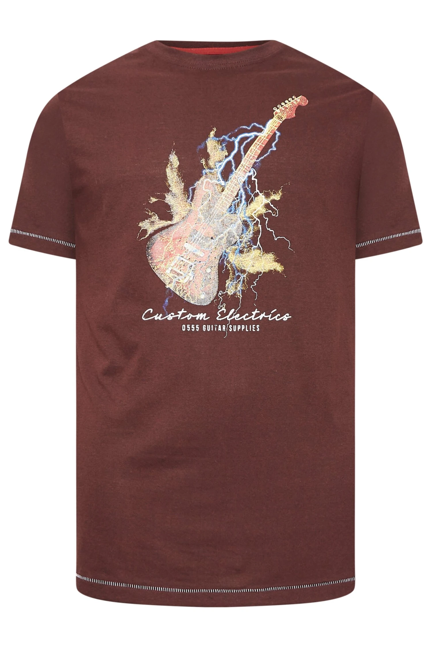 D555 Big & Tall Burgundy Red Lightning Bolt Guitar Print T-Shirt