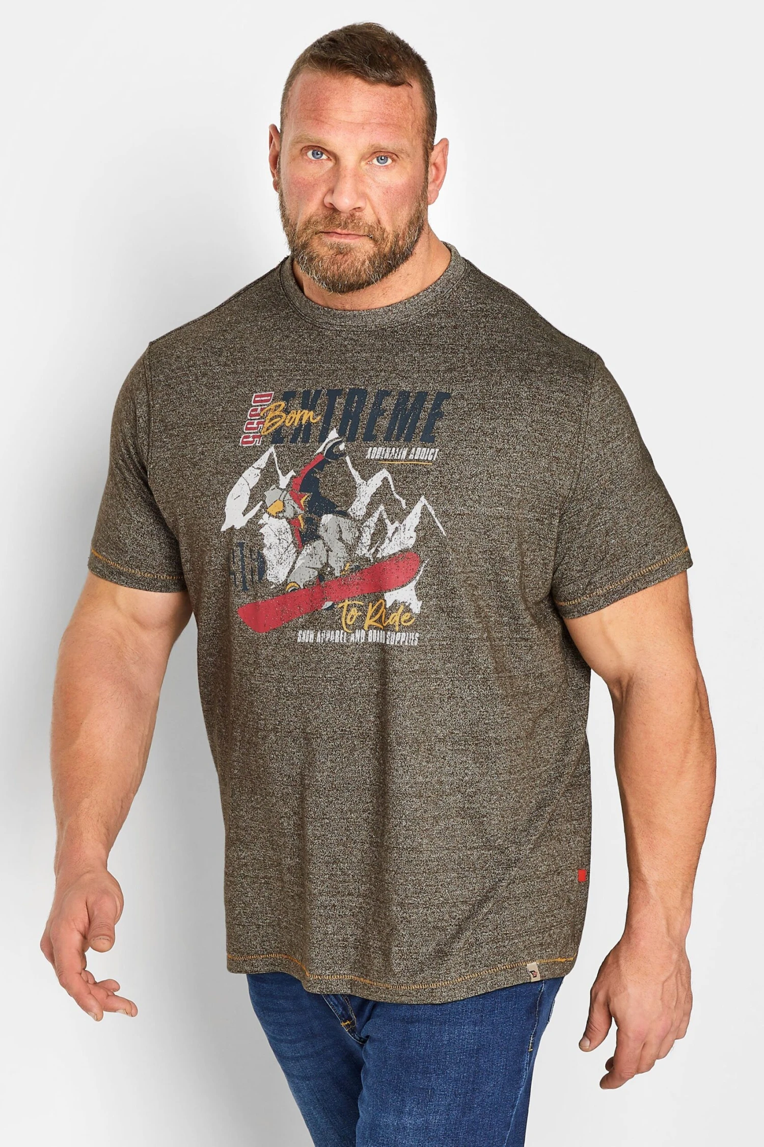 This D555 printed t-shirt is one you won’t stop wearing. Made from comfortable cotton blend, this top features a crew neck and short sleeves. Finished with an extreme ski graphic print, pair with jeans and trainers for a casual outfit.