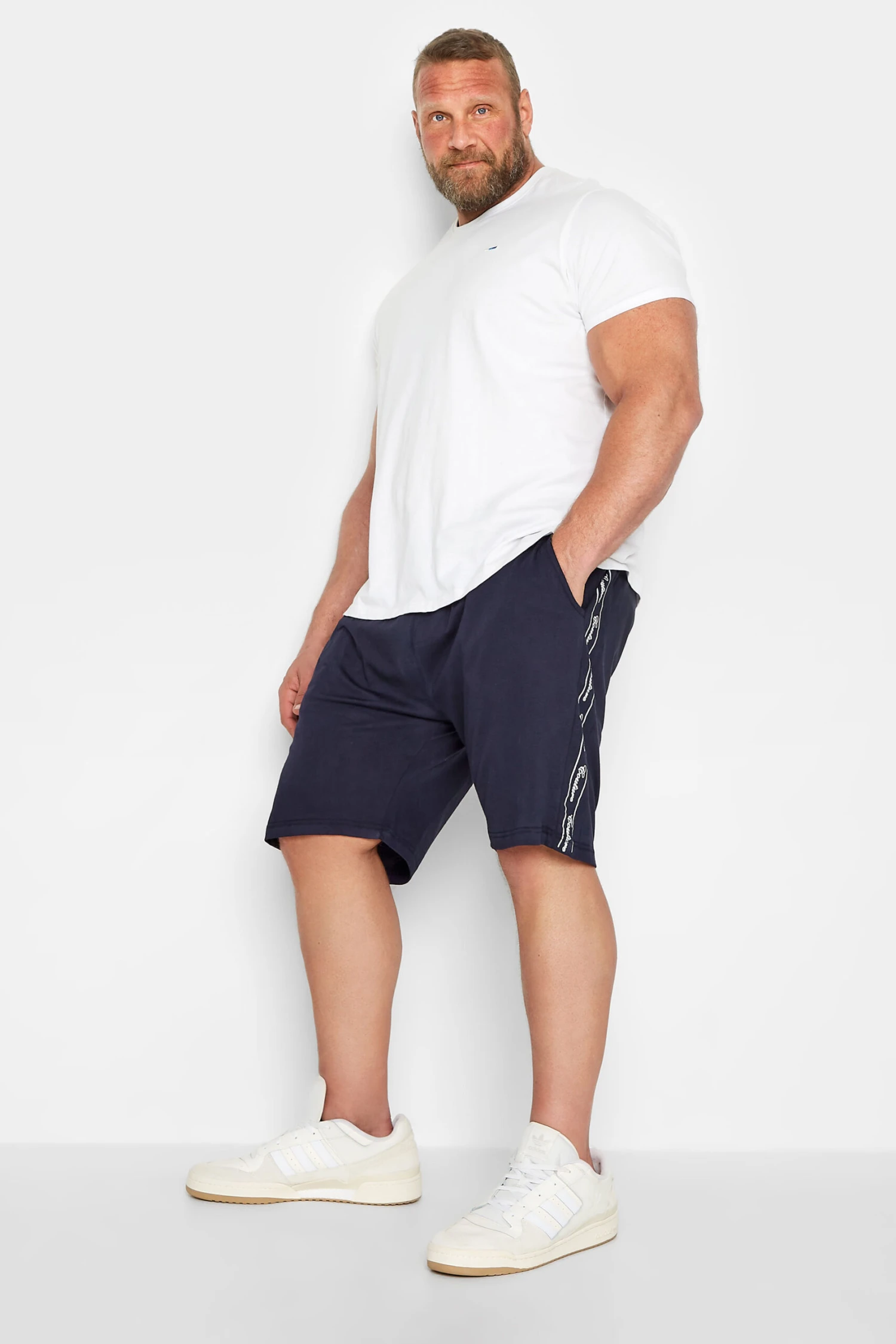 Lounge around in these must-have jogger shorts from D555. Made from a comfortable jersey fabric, they feature printed couture side panels with an elasticated waistband and tie fastening. Team with a t-shirt and trainers for a go-to casual look.