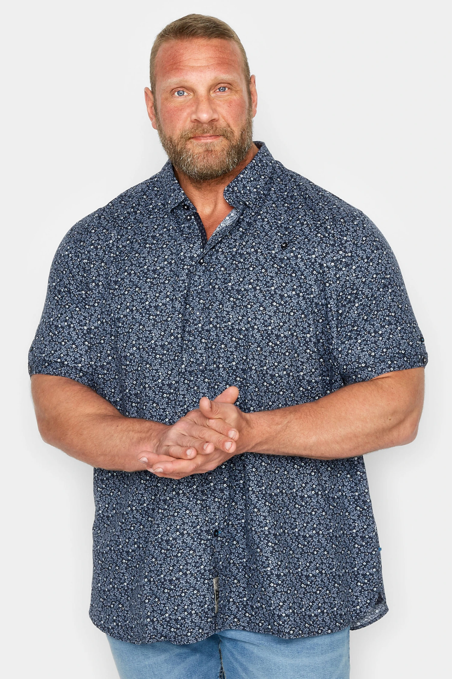 Introduce this new-in shirt from D555 into your weekend wardrobe. Made from a soft cotton fabric, it features a floral print with short sleeves and a classic collar. Team with jeans and trainers for the perfect smart-casual look.