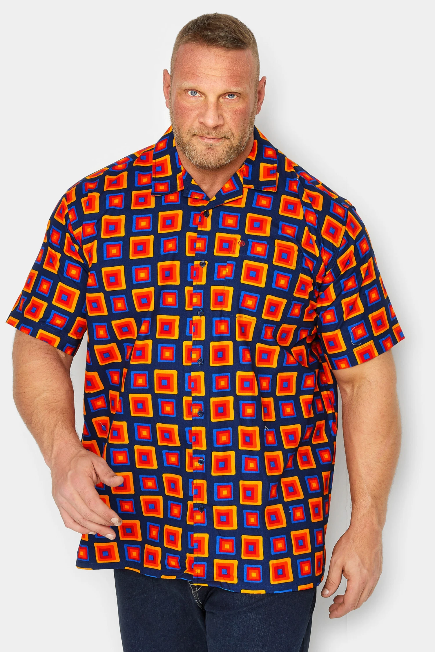 Refresh your smart collection with this new-in Espionage shirt. Constructed from 100% cotton, it features a geometric print with short sleeves, a classic collar and button-through fastenings. Wear with jeans and trainers for a smart casual look.