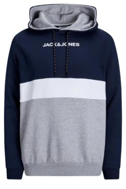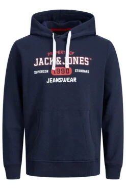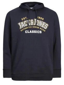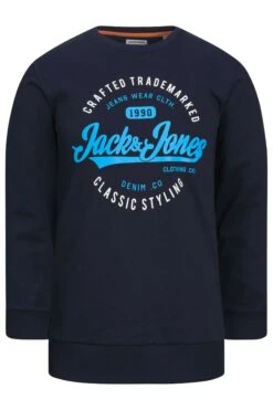 JACK & JONES Big & Tall Navy Blue & White Logo Print Sweatshirt