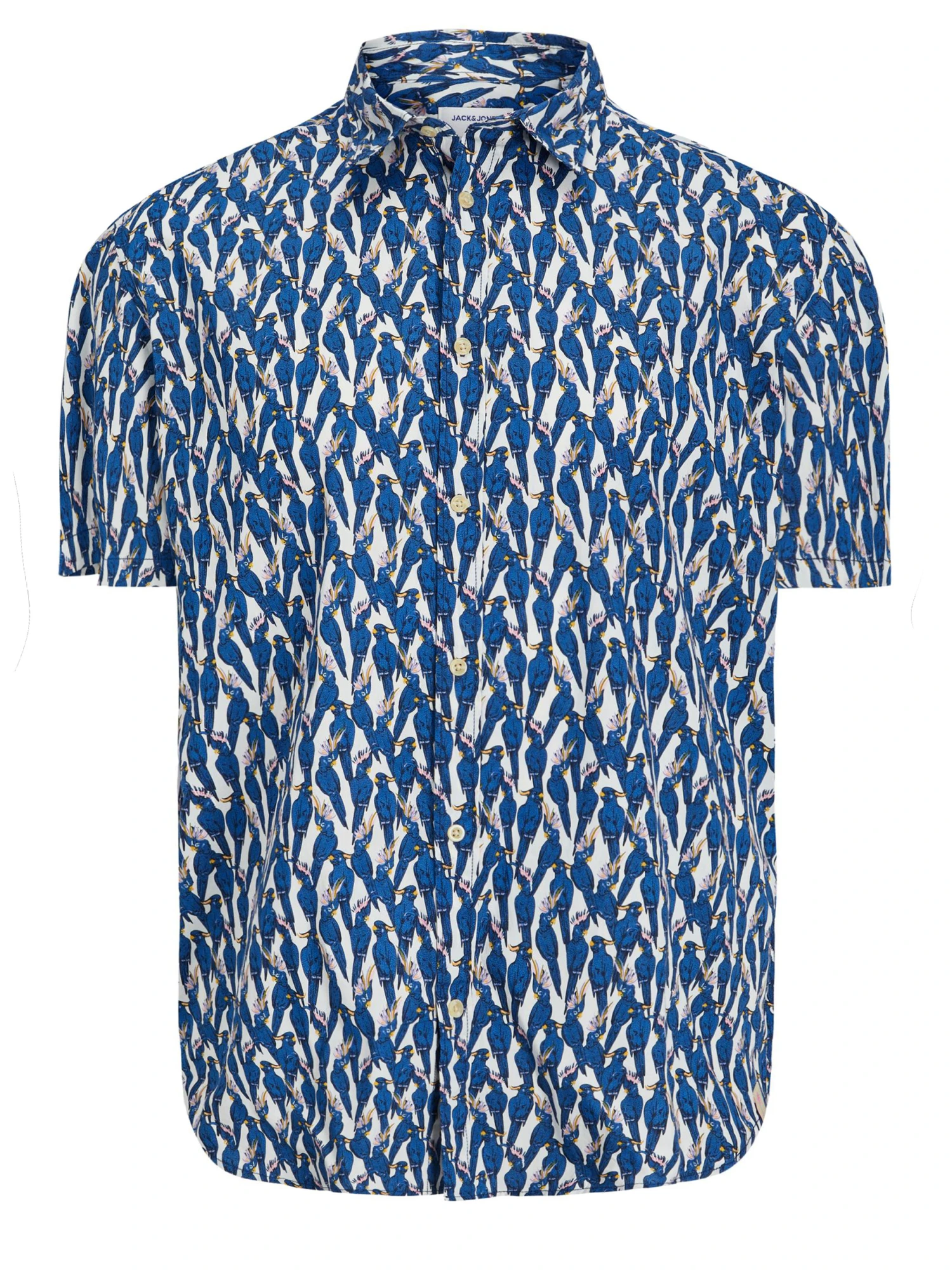 Smarten up with this Jack & Jones short sleeve shirt. Made from comfortable cotton fabric this shirt features short sleeves, an animal print, a classic collar, and a button-down detail. Style with shorts and sliders for a weekend look.