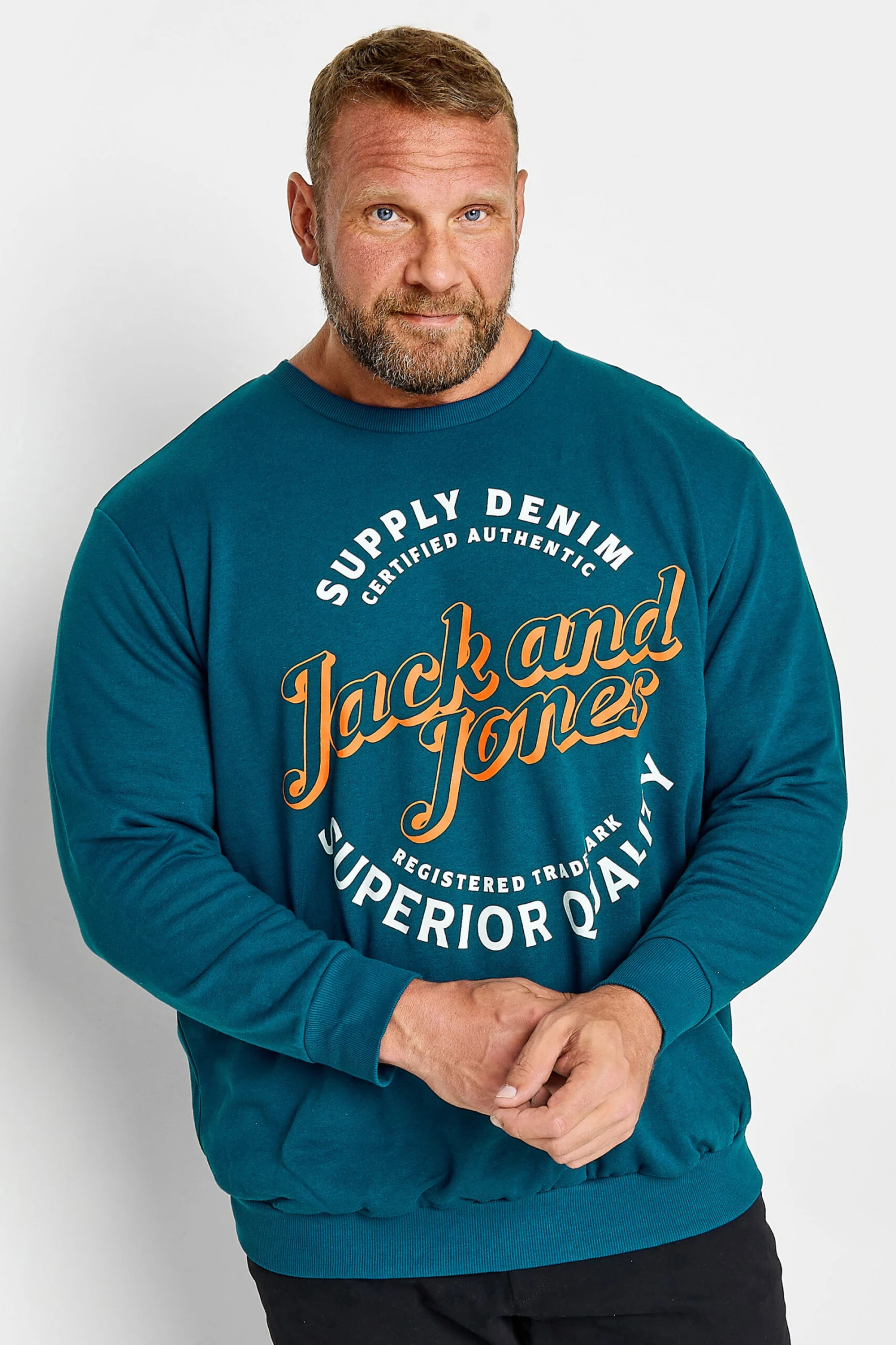 JACK & JONES Big & Tall Blue Logo Print Sweatshirt