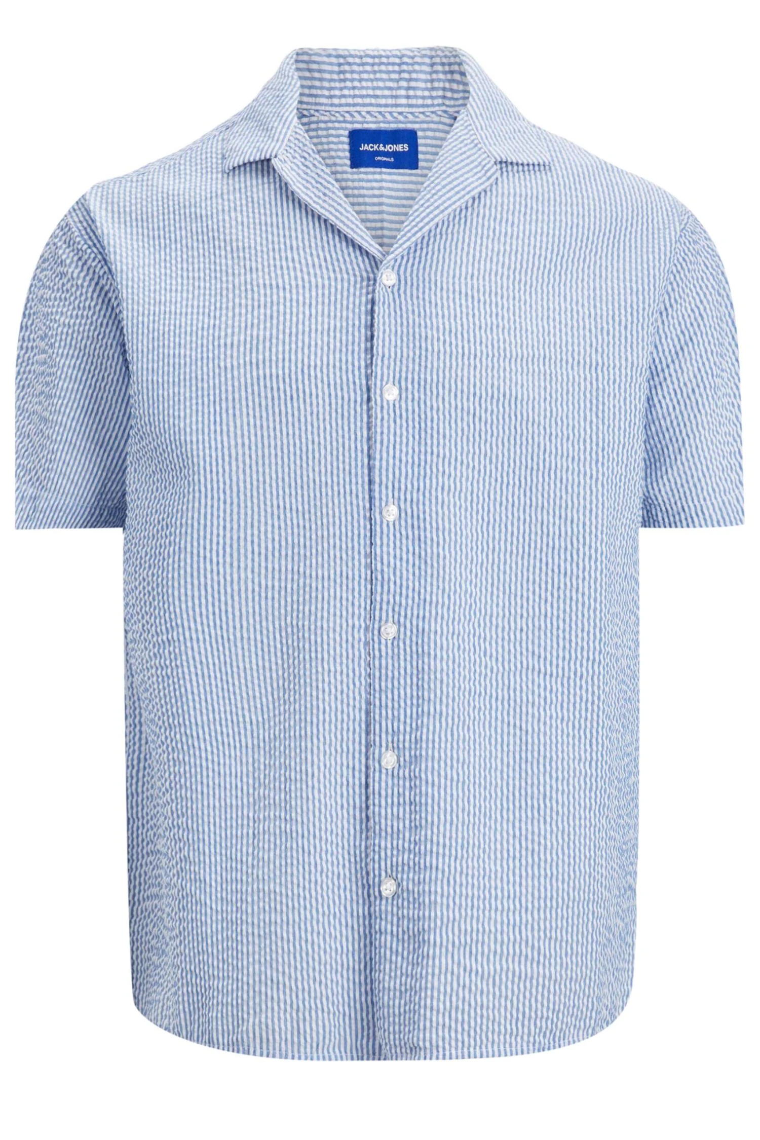 Smarten up this summer with this new-in Jack & Jones shirt. Constructed from a lightweight seersucker fabric, it features a classic collar, button-through fastenings, and short sleeves in a stripe print. Wear with jeans and trainers for a smart casual look.