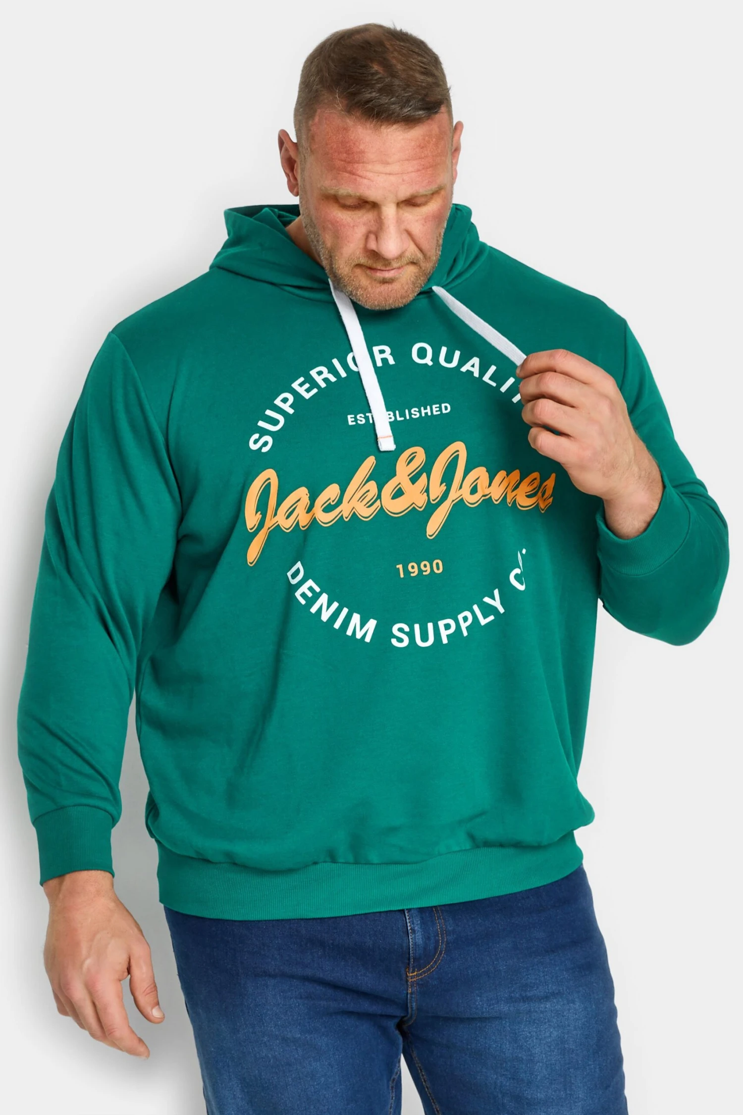 JACK & JONES Big & Tall Green Logo Print Hoodie
