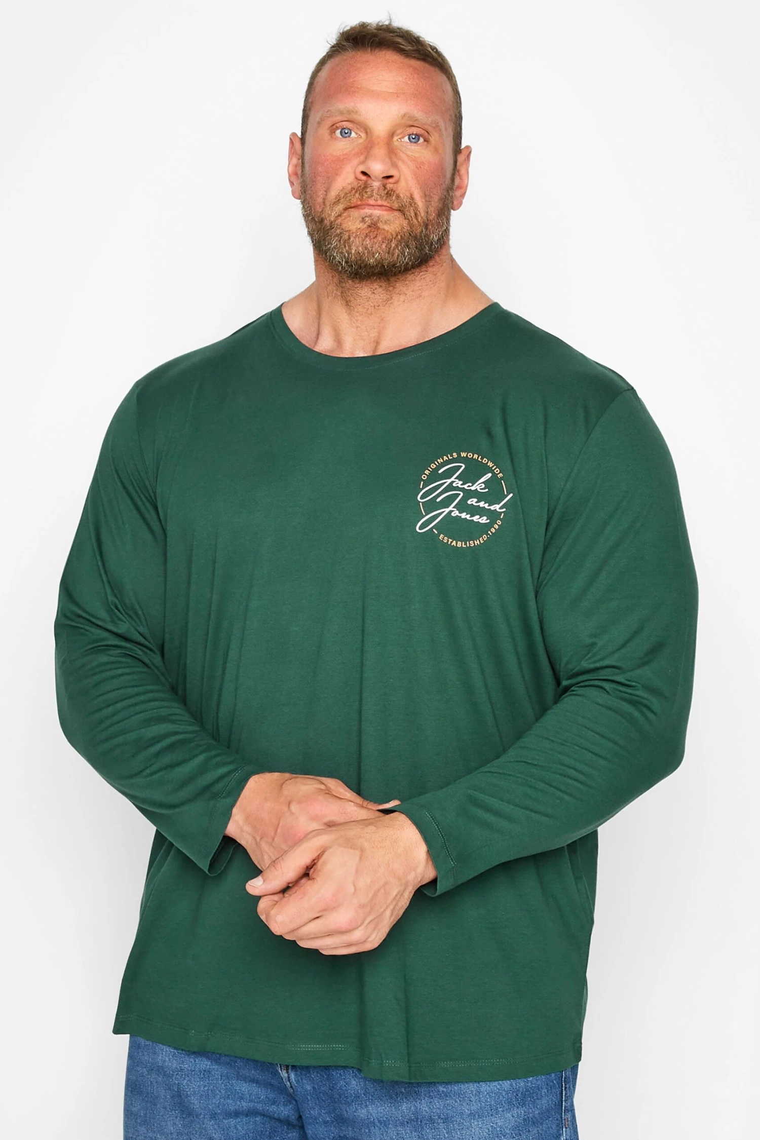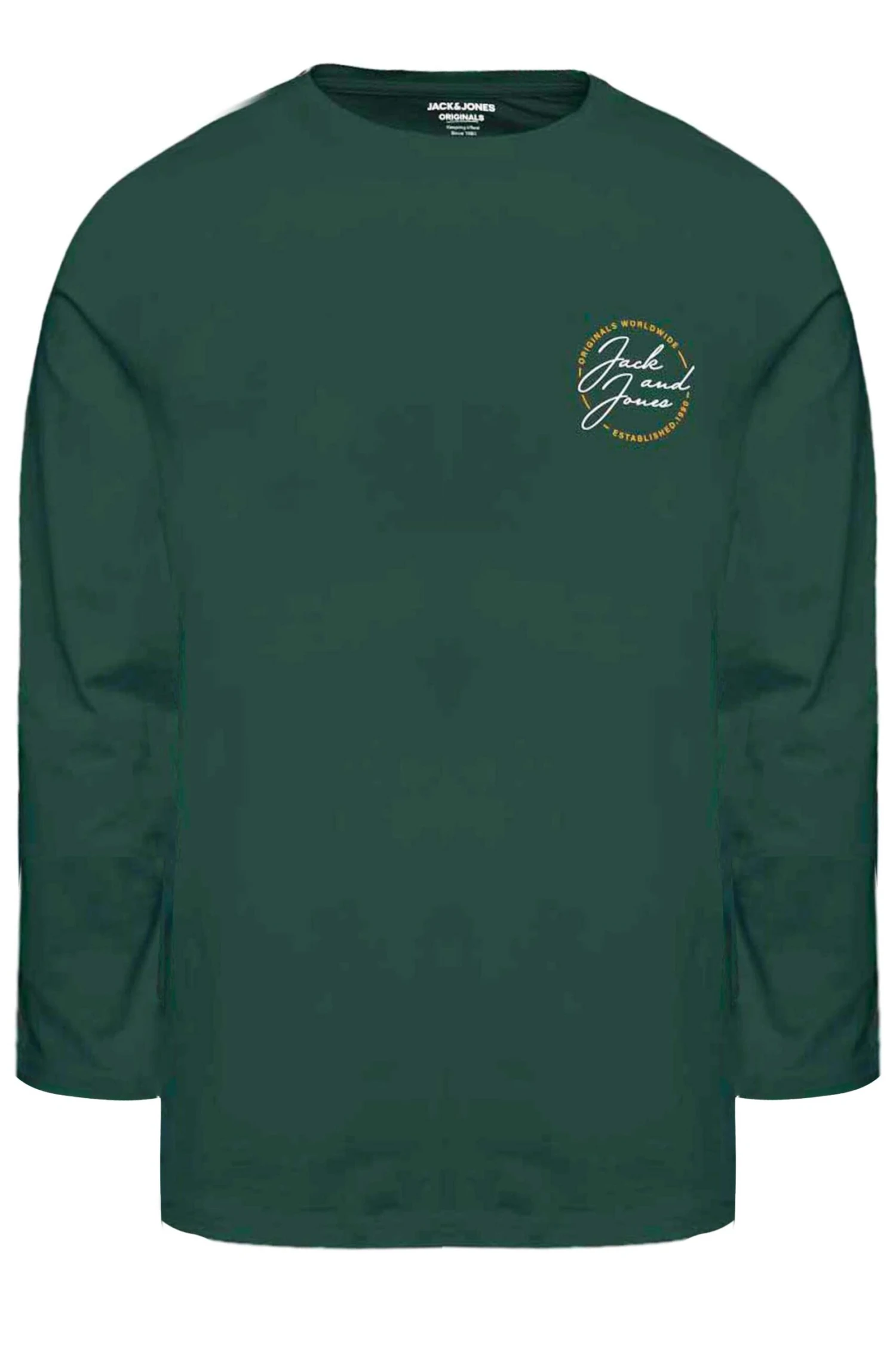 JACK & JONES Big & Tall Green Long Sleeve Printed Logo T-Shirt