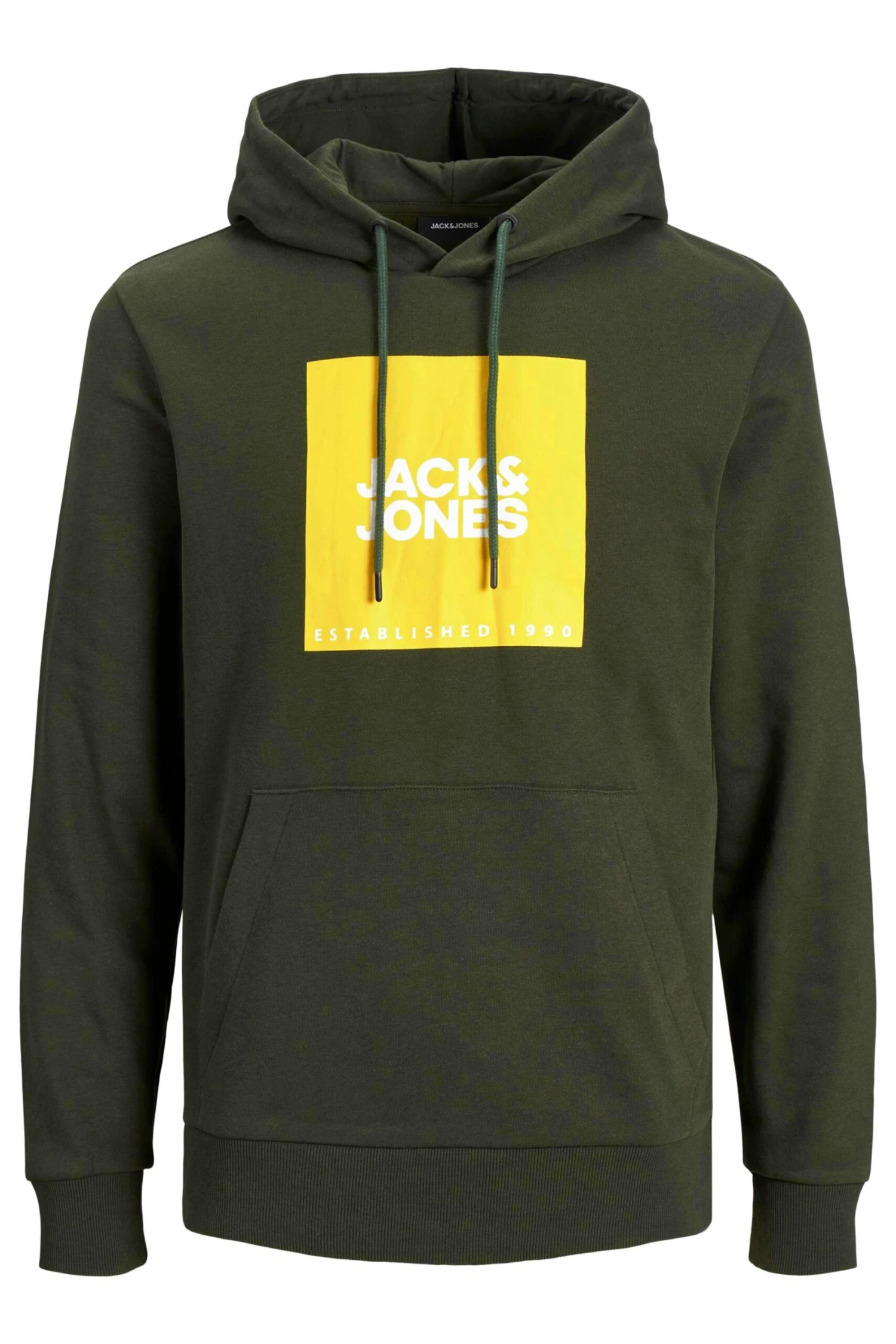Add to your casual collection with this Jack & Jones hoodie. Made from a soft cotton blend, it features long sleeves, an adjustable drawstring hood, front pocket, elasticated cuffs and hem and has a printed logo on the chest. Pair with joggers for a comfortable weekend outfit.