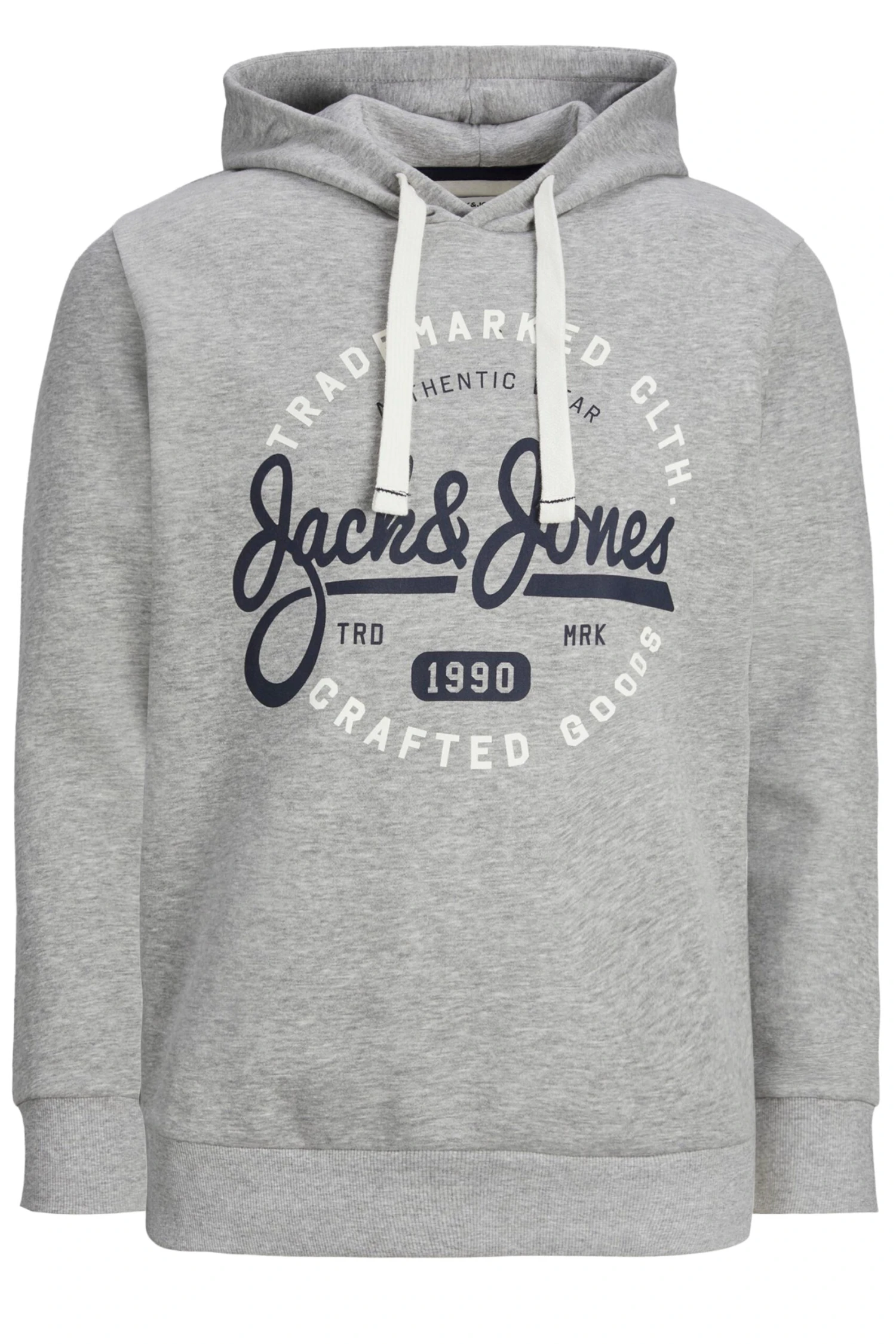 JACK & JONES Big & Tall Grey Hooded Logo Print Sweatshirt