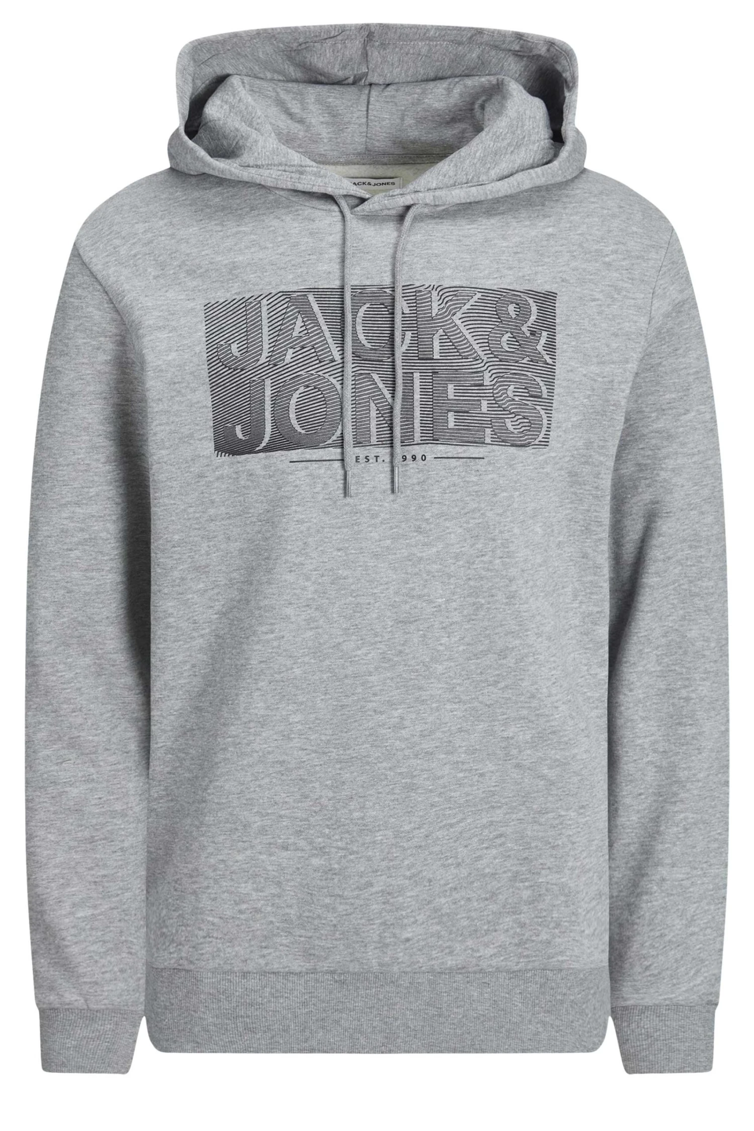 JACK & JONES Big & Tall Grey Stripe Logo Print Hoodie