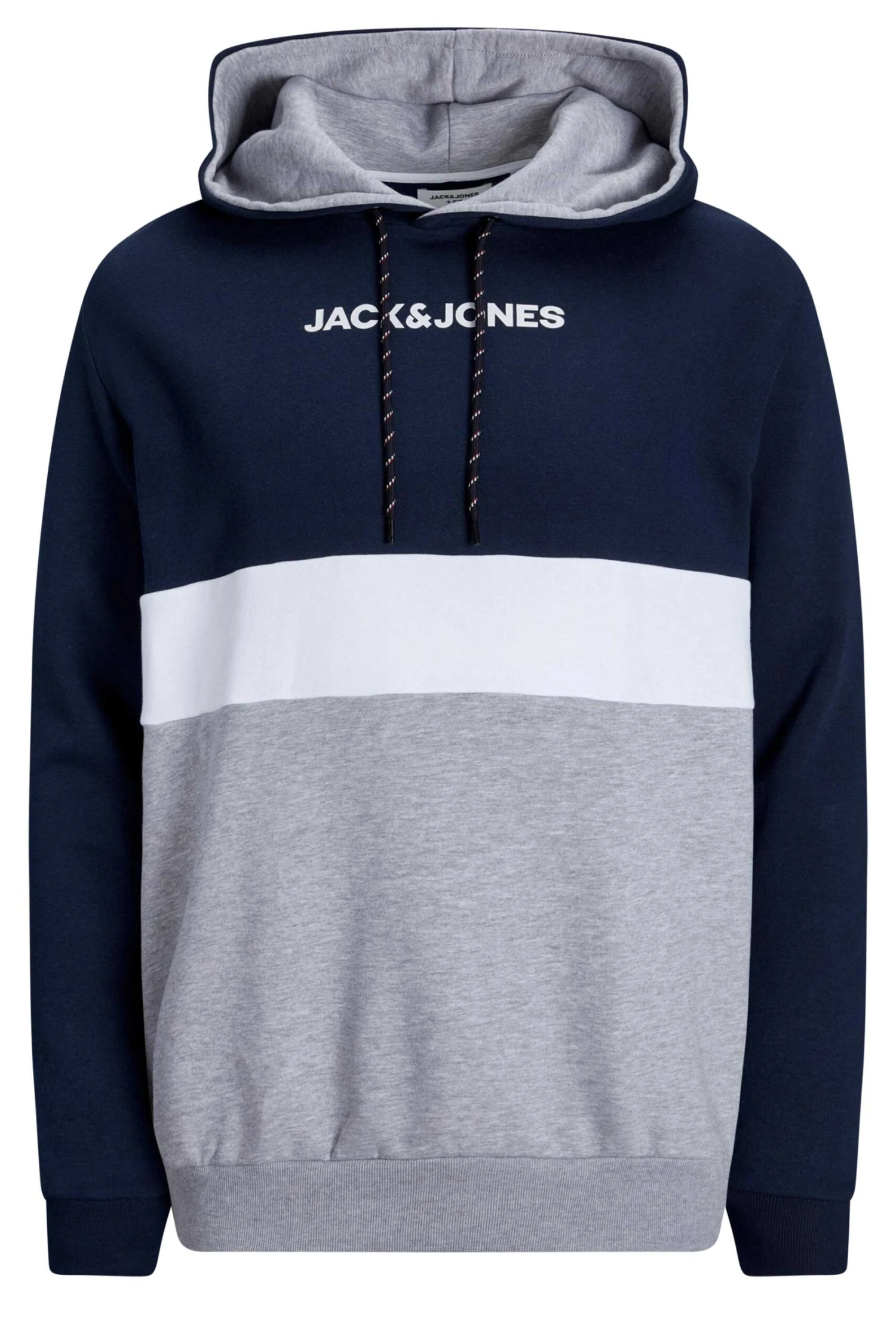 Refresh your casual collection with this hoodie from Jack & Jones. Made from comfortable cotton blend fabric, it features long sleeves, an adjustable drawstring hood, with the branded logo on the chest and colour block design. Simply style with jeans and white trainers for a comfortable weekend outfit.