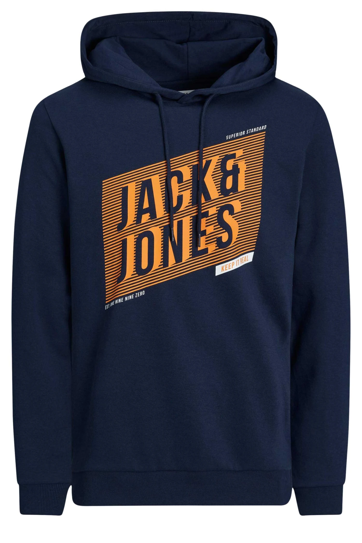 JACK & JONES Big & Tall Navy Blue Diagonal Logo Print Hoodie