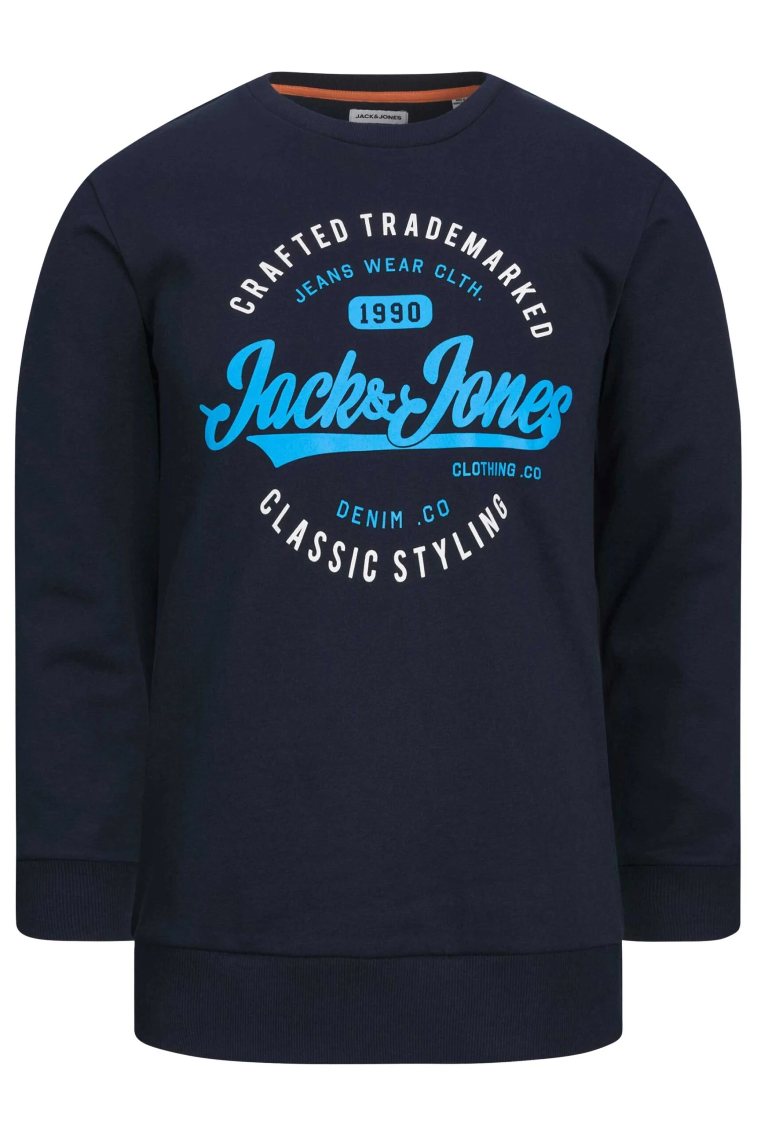 JACK & JONES Big & Tall Navy Blue & White Logo Print Sweatshirt