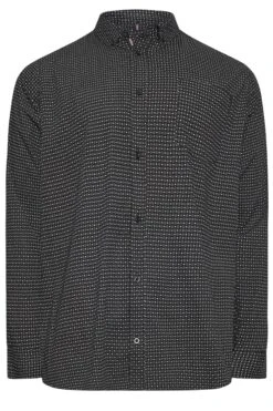BadRhino Big & Tall Black Geometric Print Poplin Long Sleeve Shirt