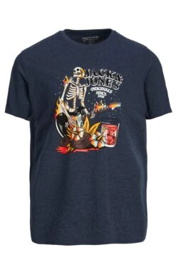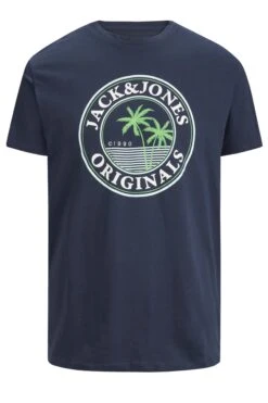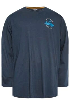 JACK & JONES Big & Tall Navy Blue Long Sleeve Printed Logo T-Shirt