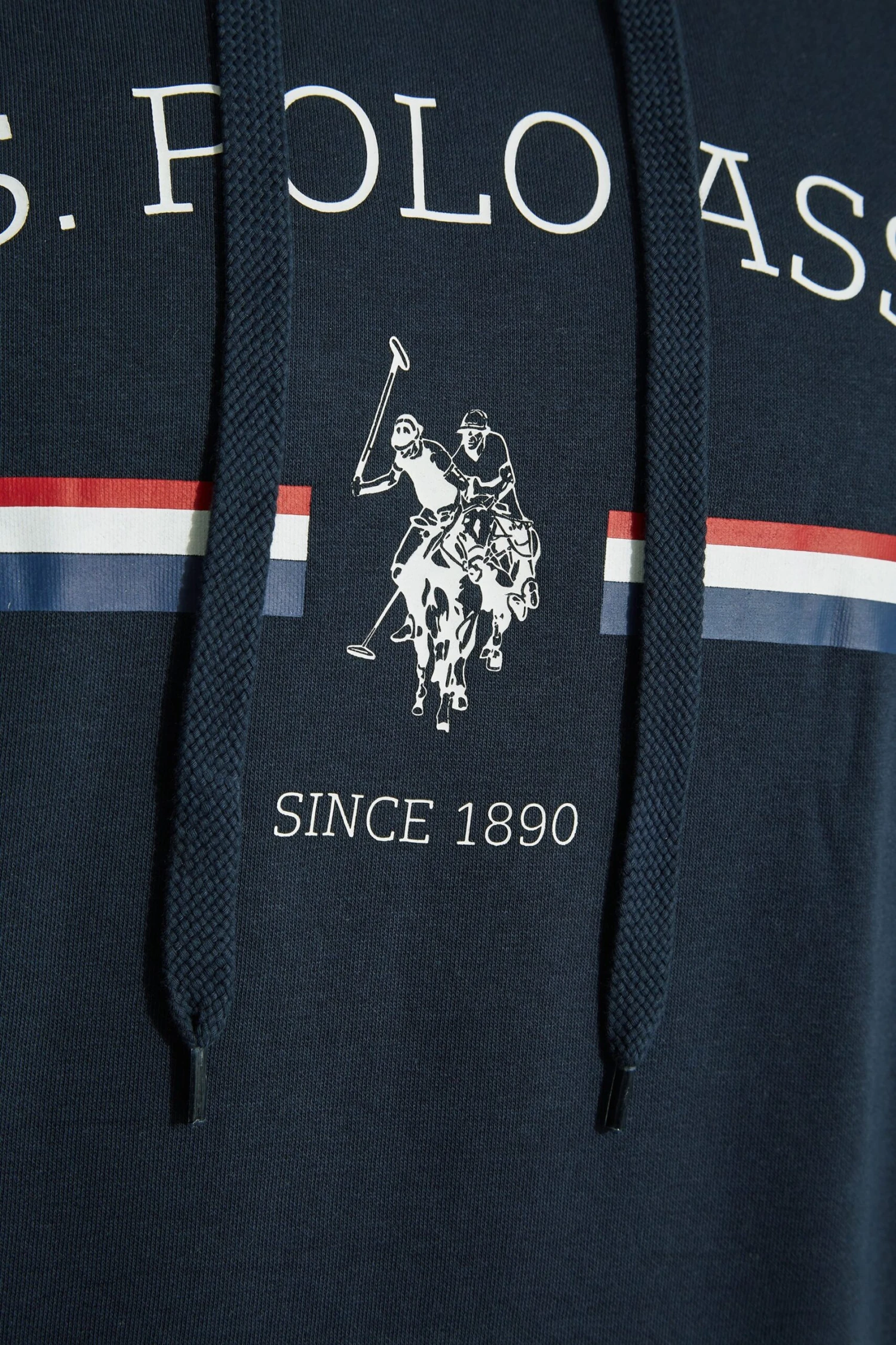 This U.S. POLO ASSN. hoodie is set to become your new casual go-to. Made from a soft jersey fabric, it features long sleeves with a drawstring hood and signature brand stripes. Team with jeans and trainers for an easy everyday look.